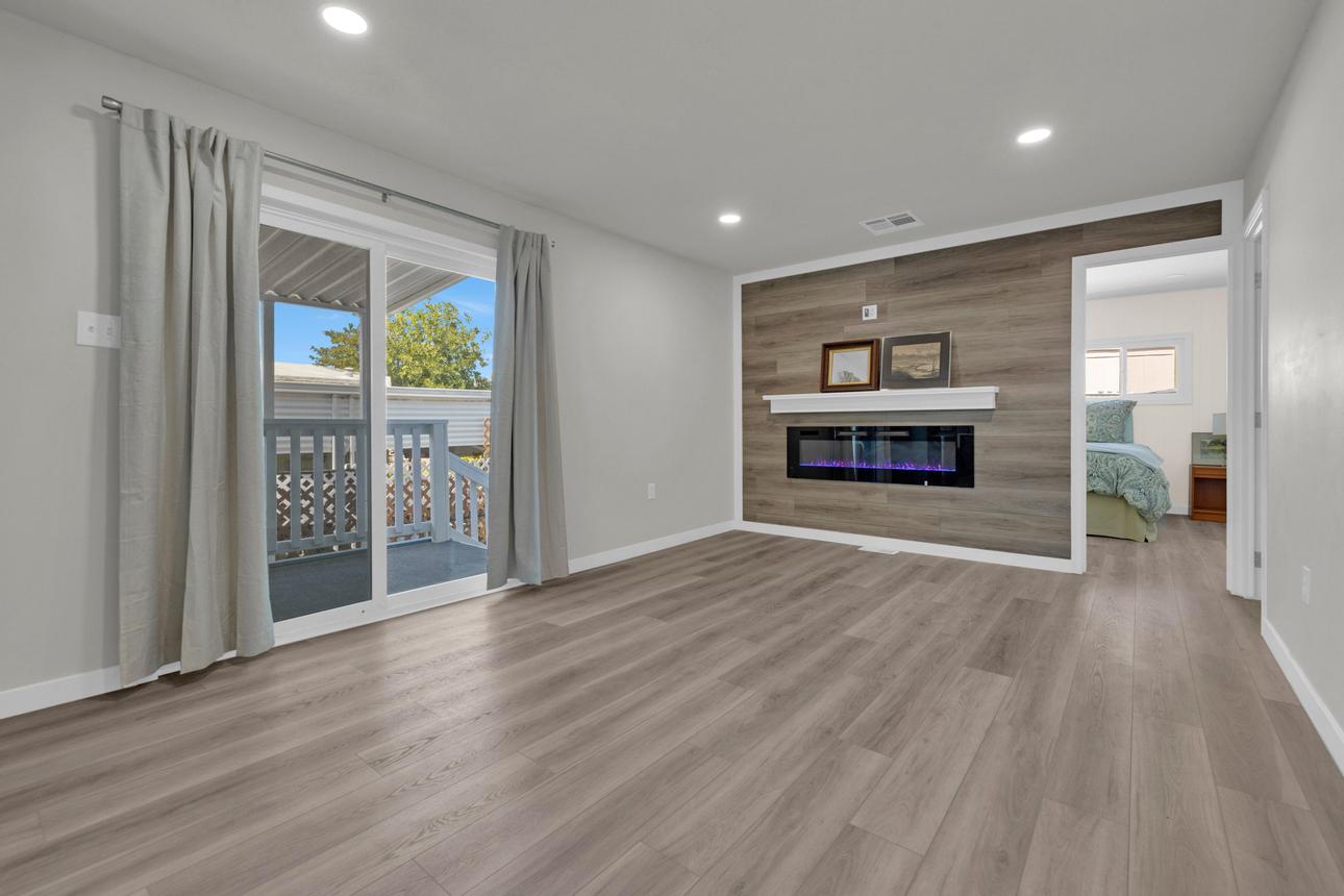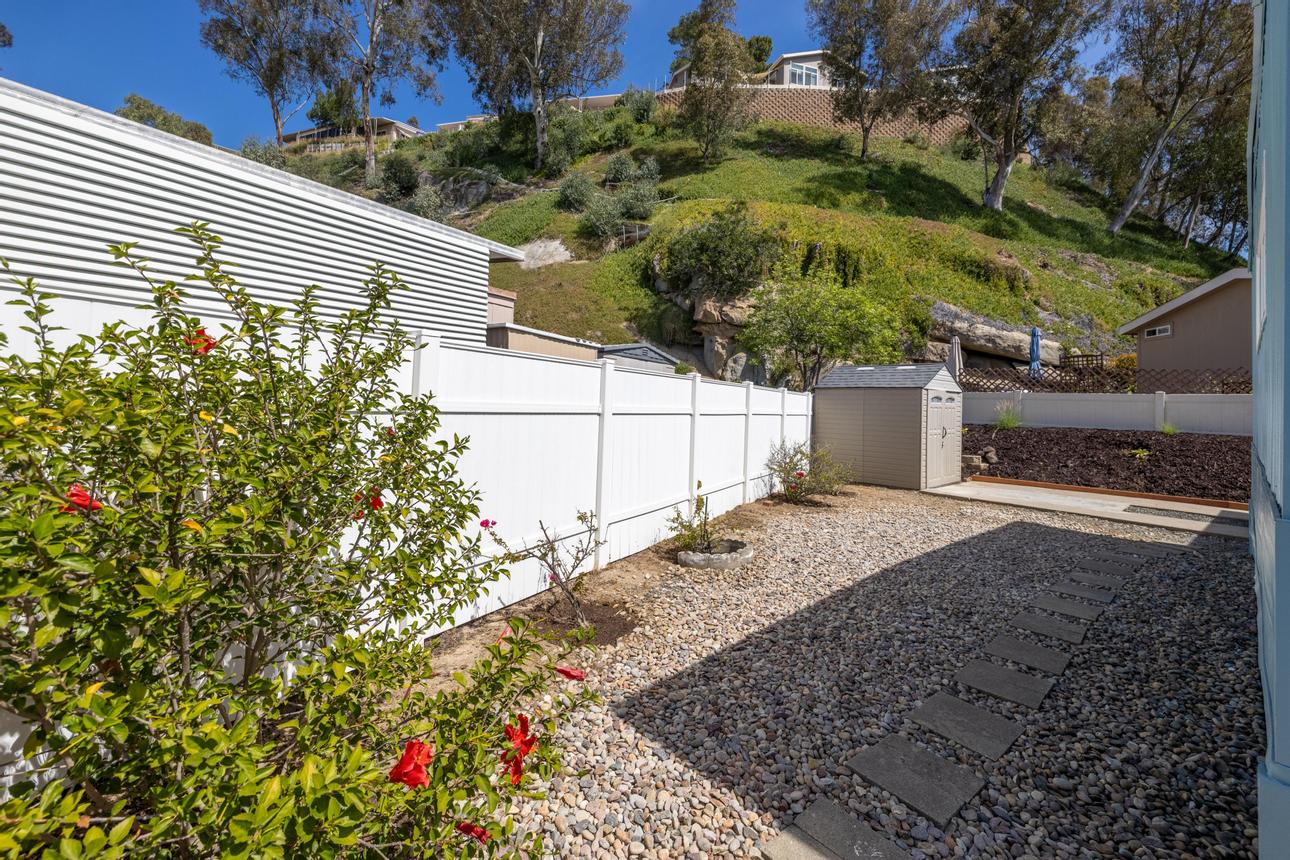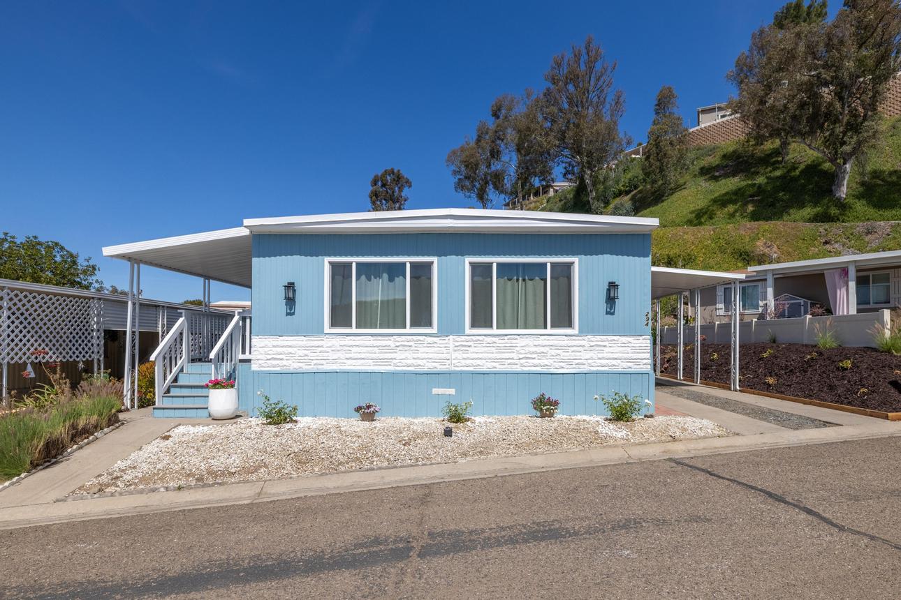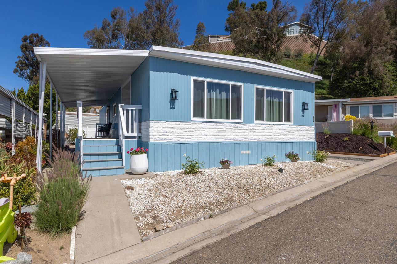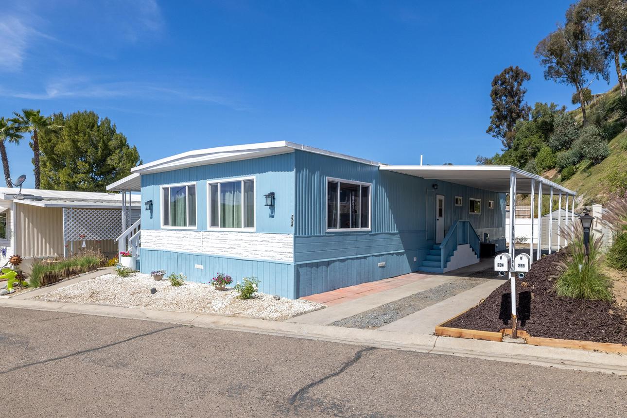 Gorgeous Remodel! Large lot that sits against a hillside with EZ care landscaping. New windows, kitchen and baths. Real wood cabinets, quartz counter tops, tiled back splash, new GE appliances and recessed lighting through out. Most of the rooms have been drywalled. The primary bedroom has a mirrored closet, and private bath with a step-in shower. The family room features a built-in electric fireplace. Too pretty to describe, must see the pictures on our website or in person! Large deck and even larger, very private back yard with room for a Bocce ball court, garden or nothing a all. Call today, you won’t want to miss this one. Located in a highly sought after 55+ community in Santee. (ABD8027)