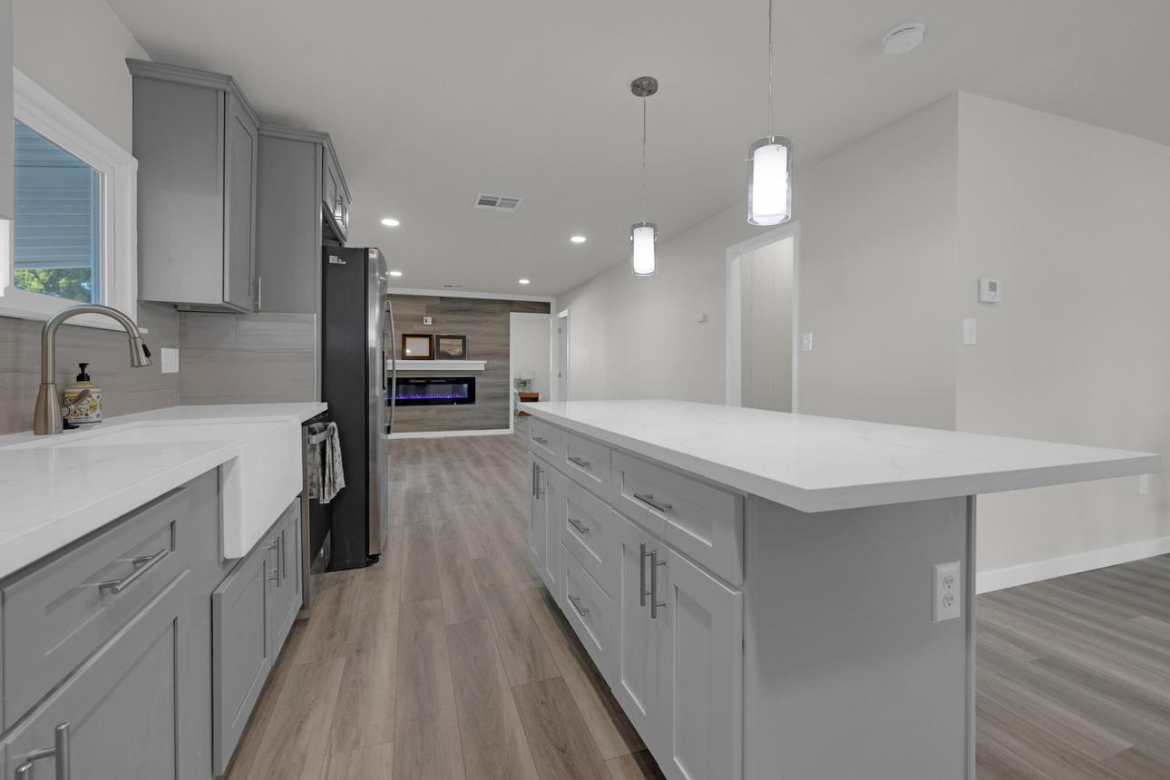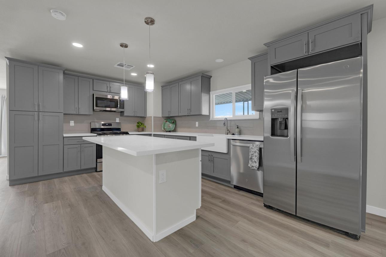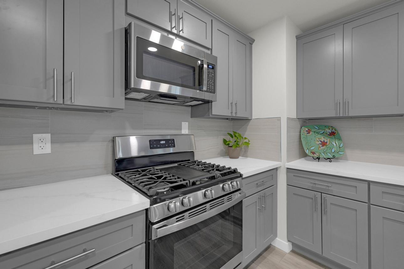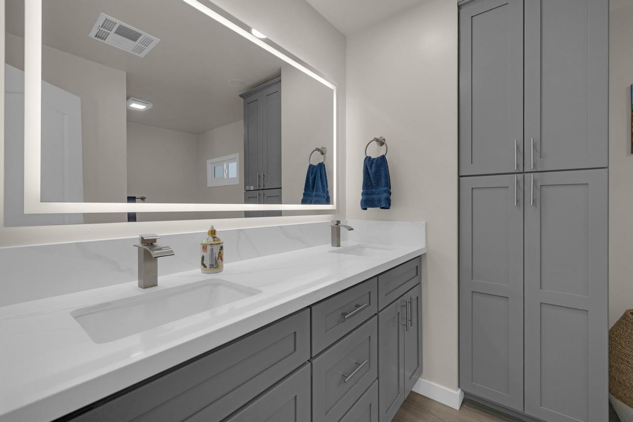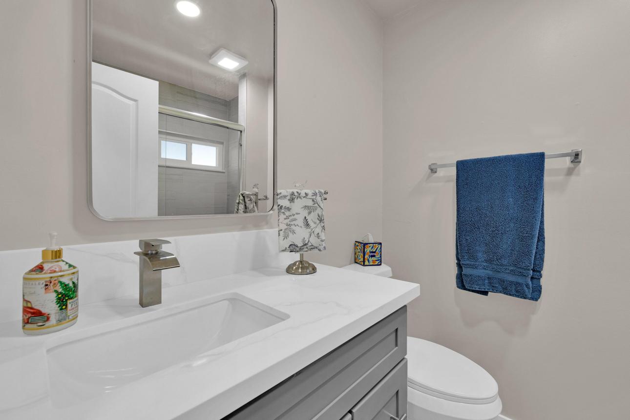 Gorgeous Remodel! Large lot that sits against a hillside with EZ care landscaping. New windows, kitchen and baths. Real wood cabinets, quartz counter tops, tiled back splash, new GE appliances and recessed lighting through out. Most of the rooms have been drywalled. The primary bedroom has a mirrored closet, and private bath with a step-in shower. The family room features a built-in electric fireplace. Too pretty to describe, must see the pictures on our website or in person! Large deck and even larger, very private back yard with room for a Bocce ball court, garden or nothing a all. Call today, you won’t want to miss this one. Located in a highly sought after 55+ community in Santee. (ABD8027)