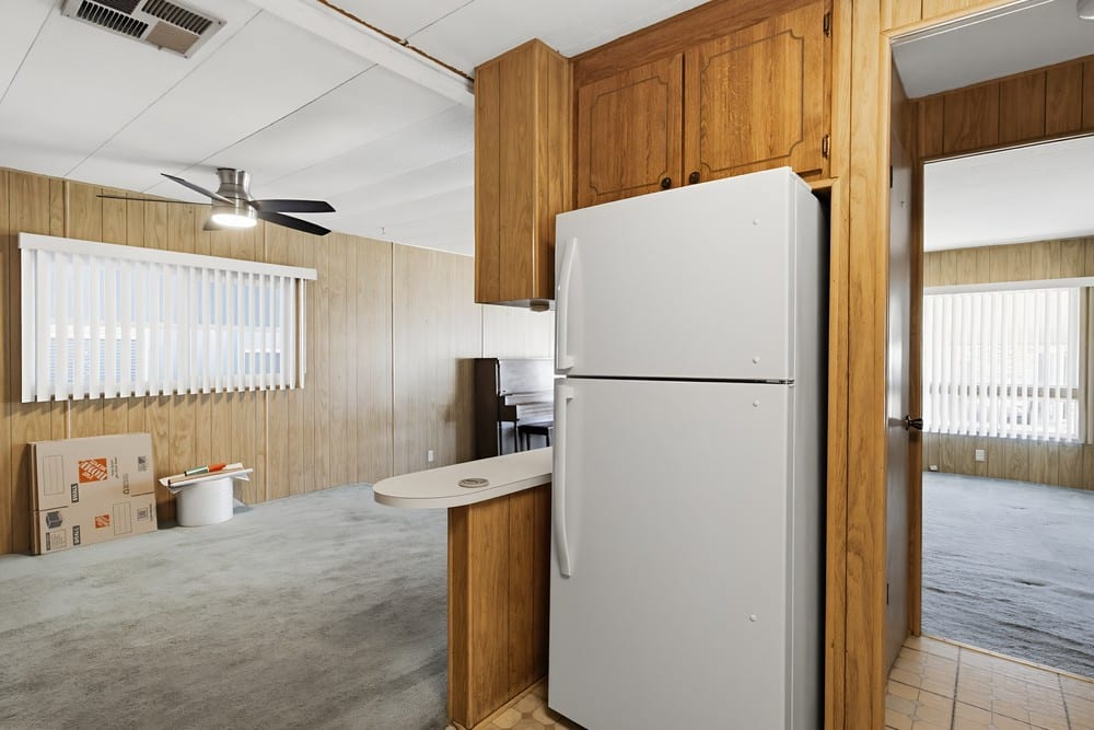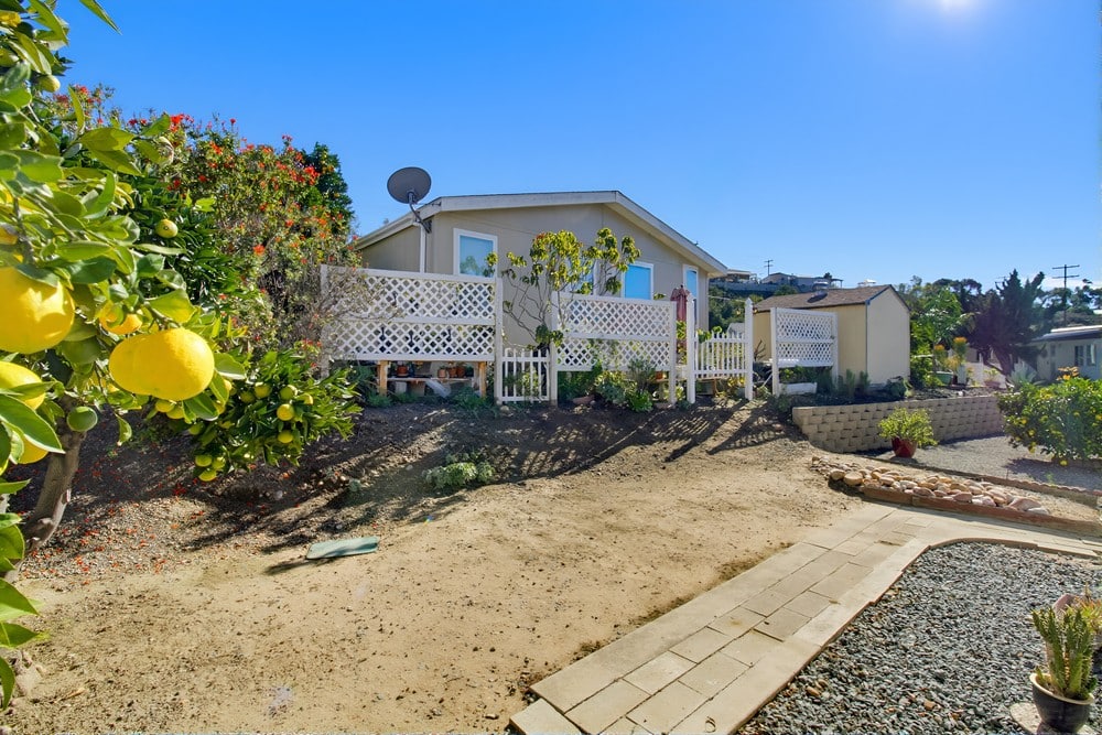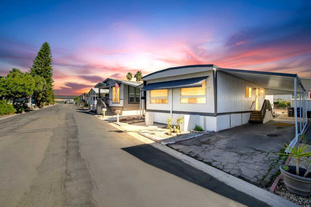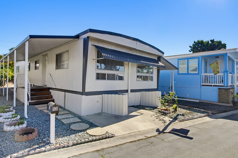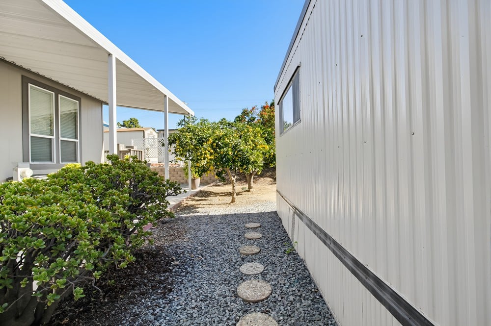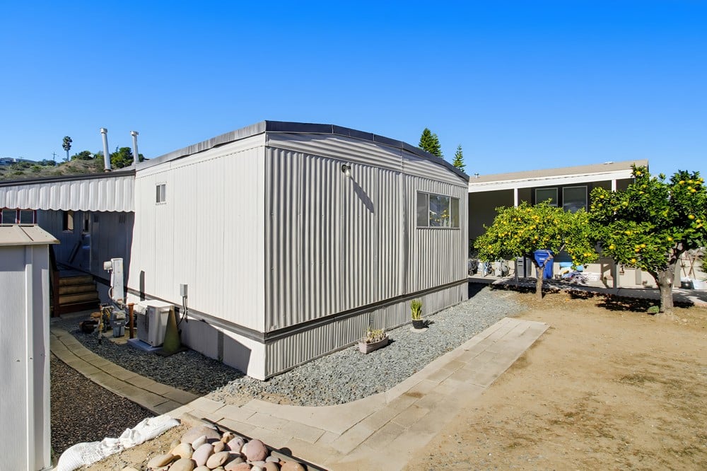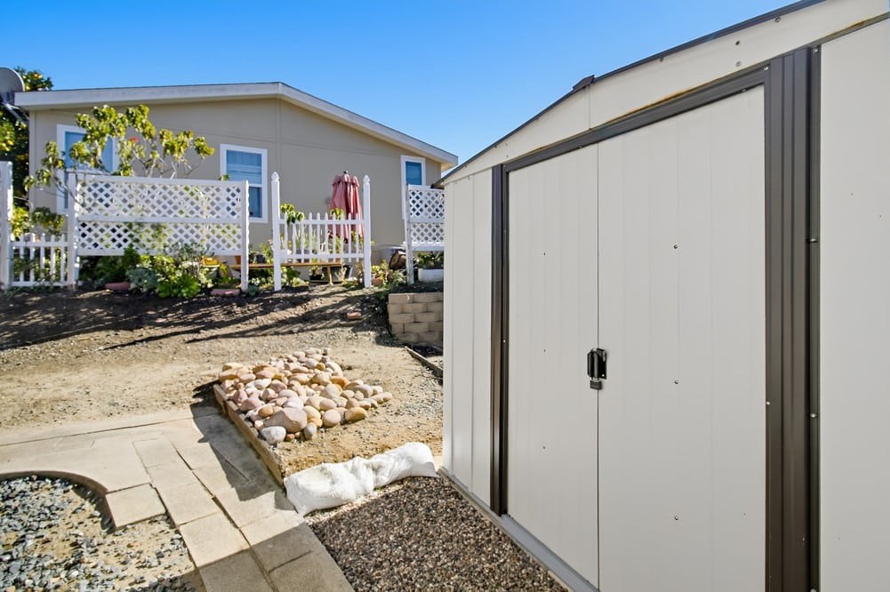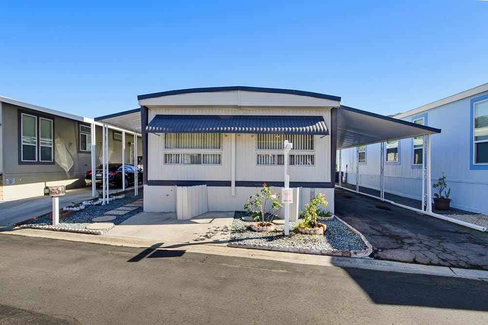 Welcome to this inviting mobile home that blends comfort, functionality and charm. Step into a bright, spacious living room highlighted by large picture windows that let in the natural light. The adjoining dining room features a ceiling fan and a built-in hutch, perfect for display and storage. The kitchen offers a breakfast bar, ample cabinetry and flows seamlessly into the living areas. Efficient mini split keeps the home cooled and heated year round! A convenient stackable washer/dryer are included. Newer step in shower in the guest bath. The primary bedroom features mirrored closets doors and private bath with dual sinks and a shower. Low maintenance landscaping with rock, pavers, roses and fruit trees. Two car parking and a storage shed plus the added benefit of NO property taxes! Priced to sell, call today! (AAZ1623)