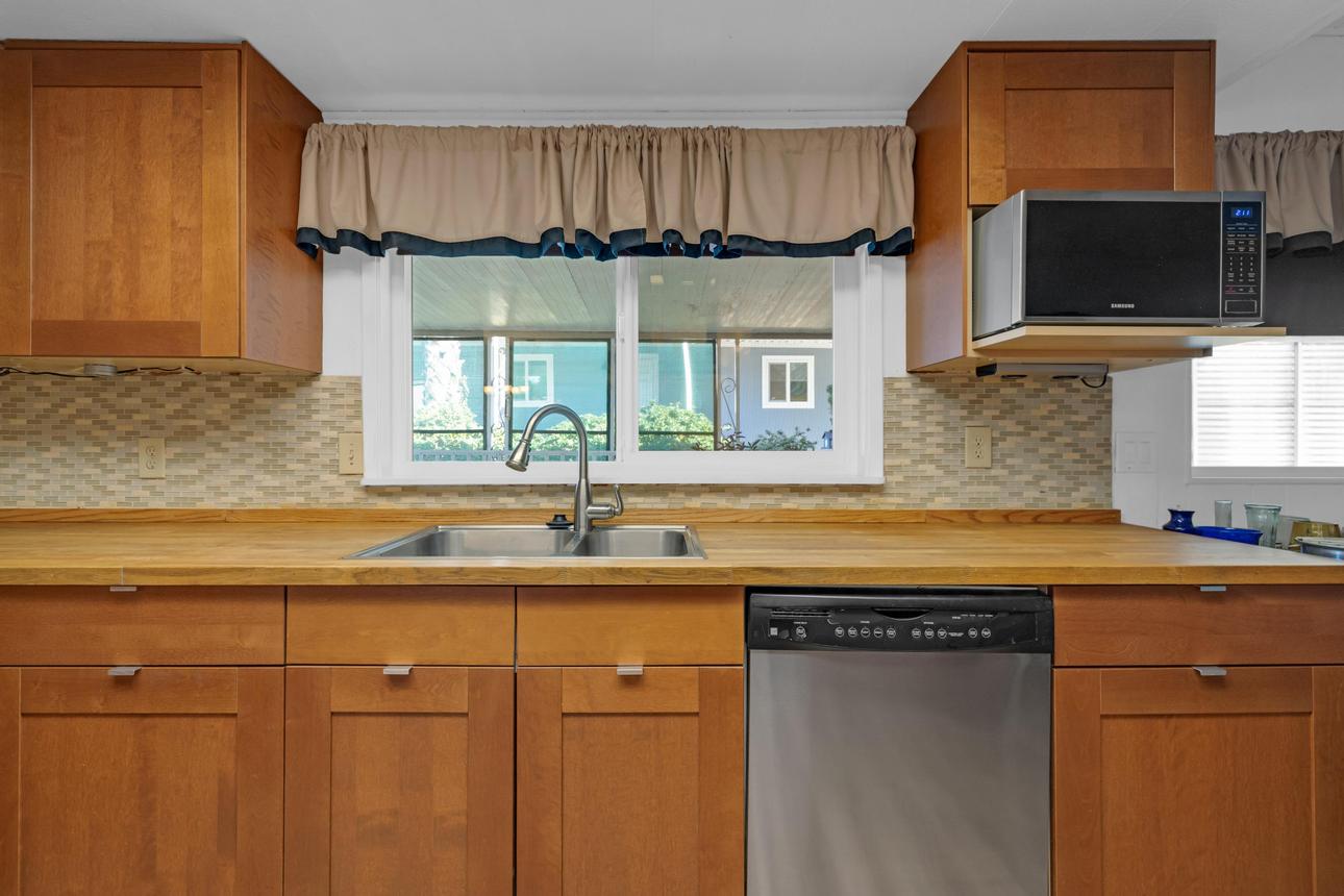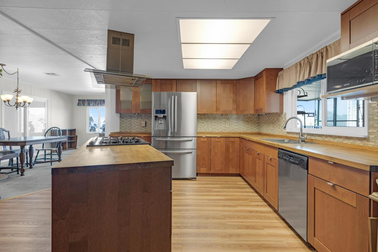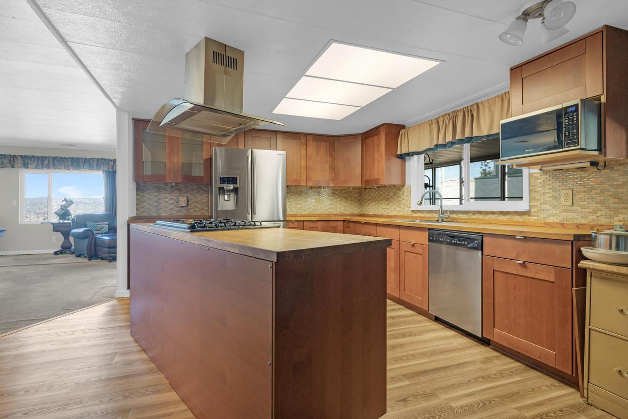 Wonderful Home in a highly sought after, All Age community in Lakeside with a View! This 2 BR, 2 BA home also includes a enclosed porch that can easily be turned into an office or an additional bedroom. The spacious living room takes in the view from the big picture windows, and all of the windows throughout the home are newer, dual pane vinyl windows. The remodeled kitchen has newer cabinets and counter tops and includes all of the newer stainless steel appliances, plus a washer/dryer in the utility room. The small yard is easy to care for and there is a lovely deck large enough for some furniture to enjoy the fabulous view. Includes two storage sheds and No Property Tax! The home is on annual registration. Call today to see this home for yourself. (ABI9255)