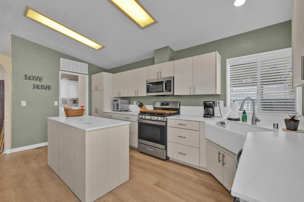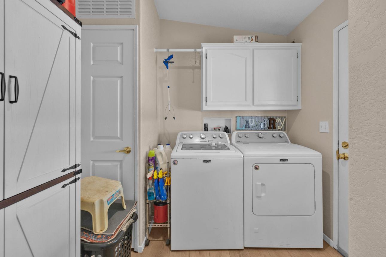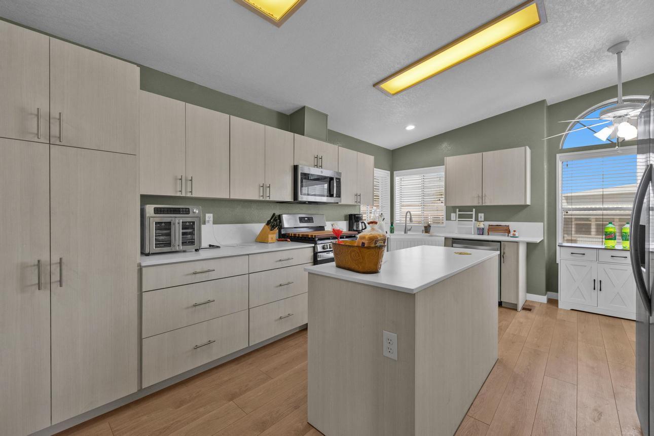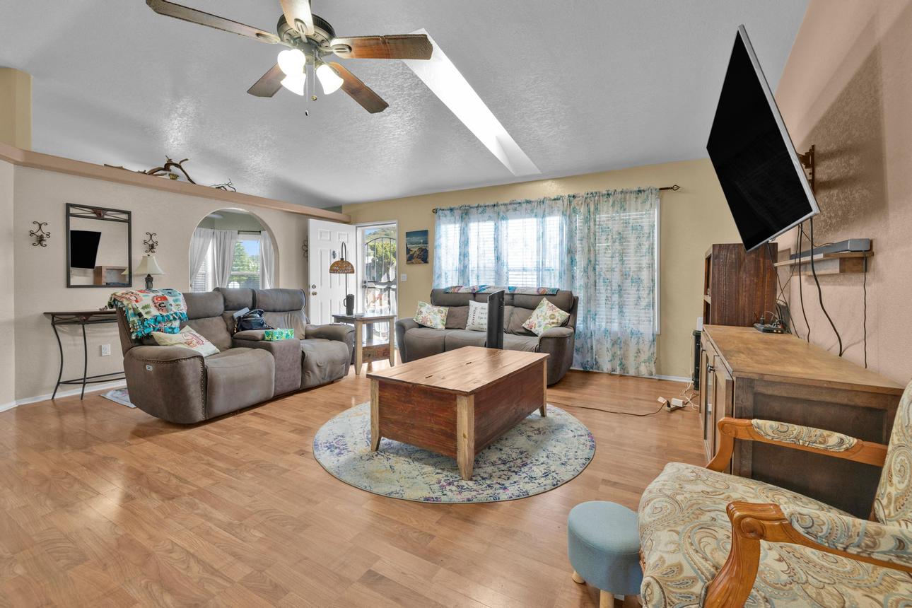Beautiful, 3 bedroom Hallmark Manufactured home in a highly sought after 55+ community! 1521 sf of living space on a nice corner lot. High ceilings with ceiling fans in every room, updated kitchen with newer stainless steel appliances, cabinets and farm house sink. Open archway dining room flowing into the living room with a skylight. Double french doors open to the 3rd bedroom or office. Laminate flooring, newer washer/dry in the big utility room are included. Lovely, mature landscaping, large carport with a storage shed and so much more. Plus low low space rent! Don’t let this one pass you by, call today! (LAV7895)