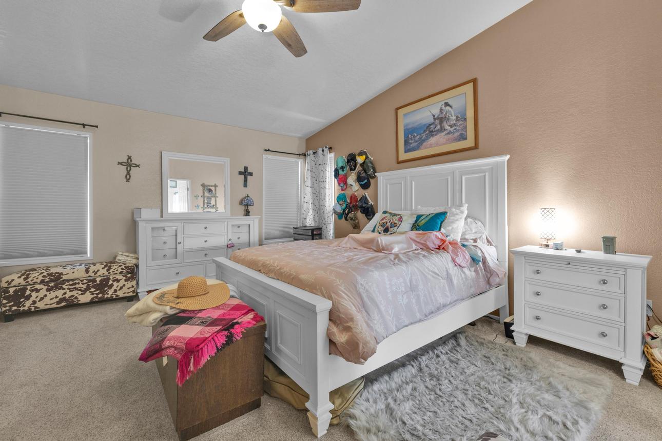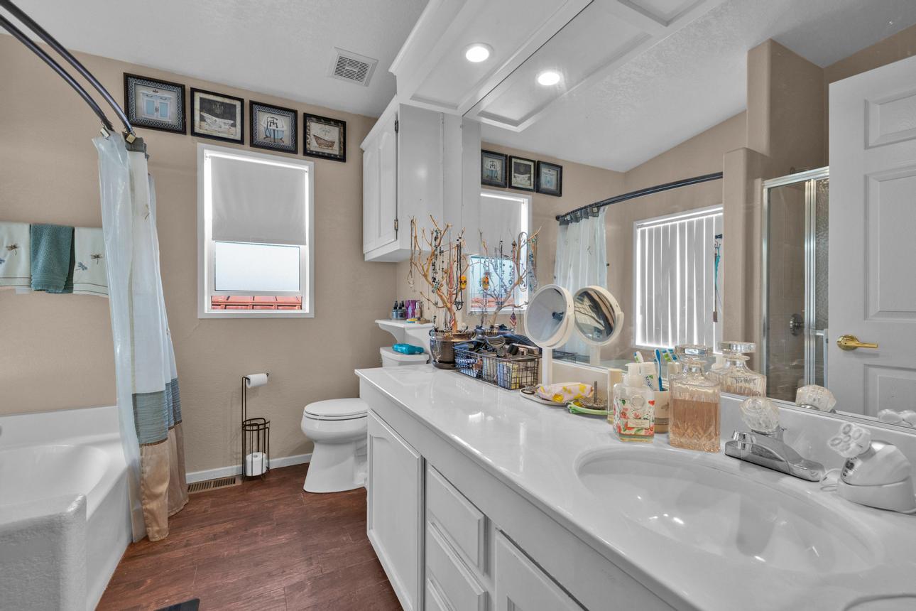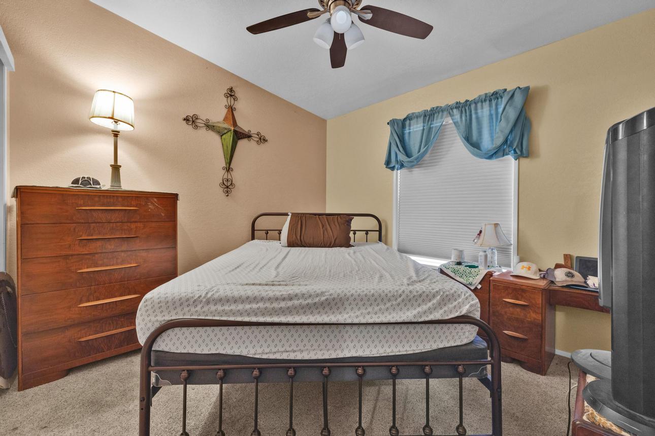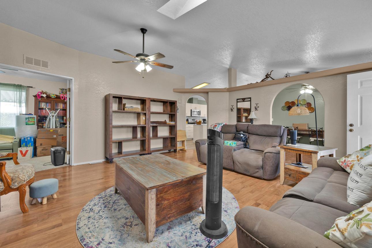 Beautiful, 3 bedroom Hallmark Manufactured home in a highly sought after 55+ community! 1521 sf of living space on a nice corner lot. High ceilings with ceiling fans in every room, updated kitchen with newer stainless steel appliances, cabinets and farm house sink. Open archway dining room flowing into the living room with a skylight. Double french doors open to the 3rd bedroom or office. Laminate flooring, newer washer/dry in the big utility room are included. Lovely, mature landscaping, large carport with a storage shed and so much more. Plus low low space rent! Don’t let this one pass you by, call today! (LAV7895)