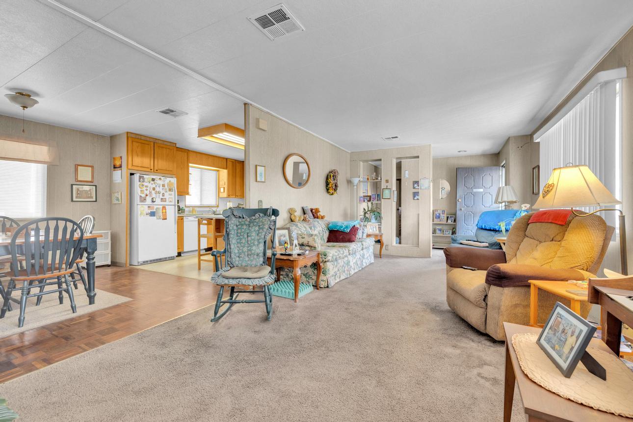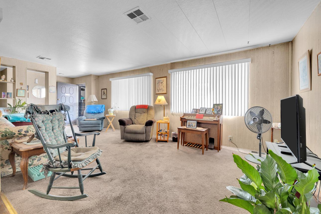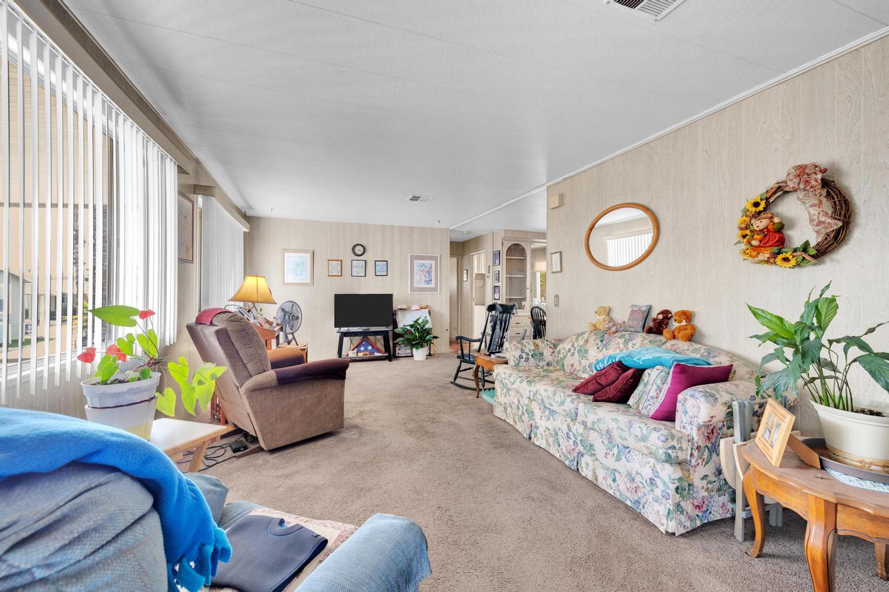 Welcome to this charming 1971 Golden West mobile home offering 1,440 sq. ft. of comfortable living space with 3 bedrooms and 2 bathrooms, located in the gated senior community of Rancho Mesa. Space rent includes water, sewer, and access to amenities. Community requirements include one resident aged 55+ and additional occupants 40+. Step inside to a spacious living room that adjoins the kitchen and dining area, featuring a split floor plan for added privacy and comfort. Three spacious bedrooms and two full bathrooms provide flexible options for a home office, hobby space, or guests. The primary suite includes a private en-suite bathroom and a walk-in closet. Fully replumbed in 2021 with a well-maintained roof and no history of leaks, this home also offers a covered carport with space for 2–3 vehicles. Residents of Rancho Mesa enjoy a wide range of amenities, including a pool and spa, fitness center, clubhouse, library, billiards room, shuffleboard courts, and horseshoe pits. The community also offers a variety of organized activities to stay active and connected. Enjoy the convenience of on-site RV storage. Conveniently located near shopping, dining, parks, major highways, and public transportation, this home combines comfort and convenience. (AAE4770)