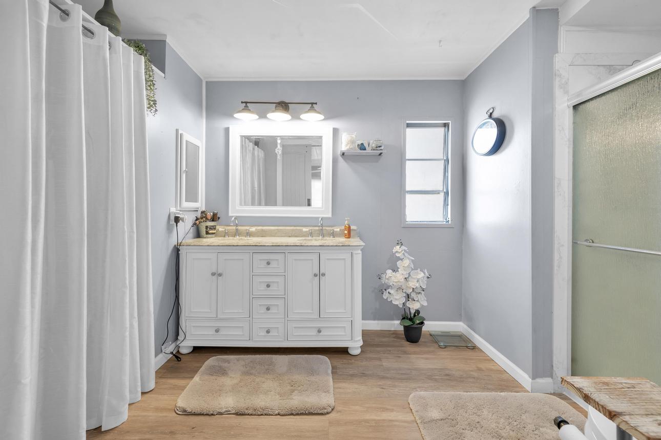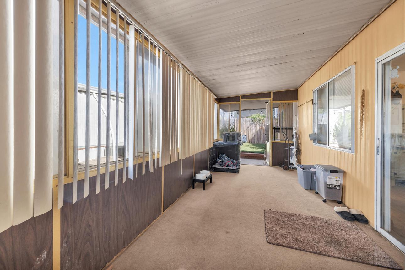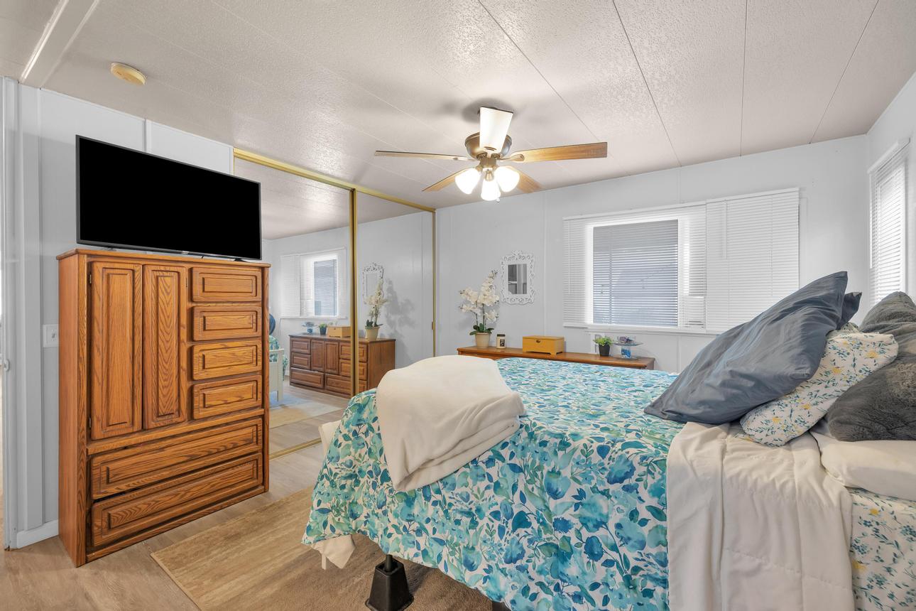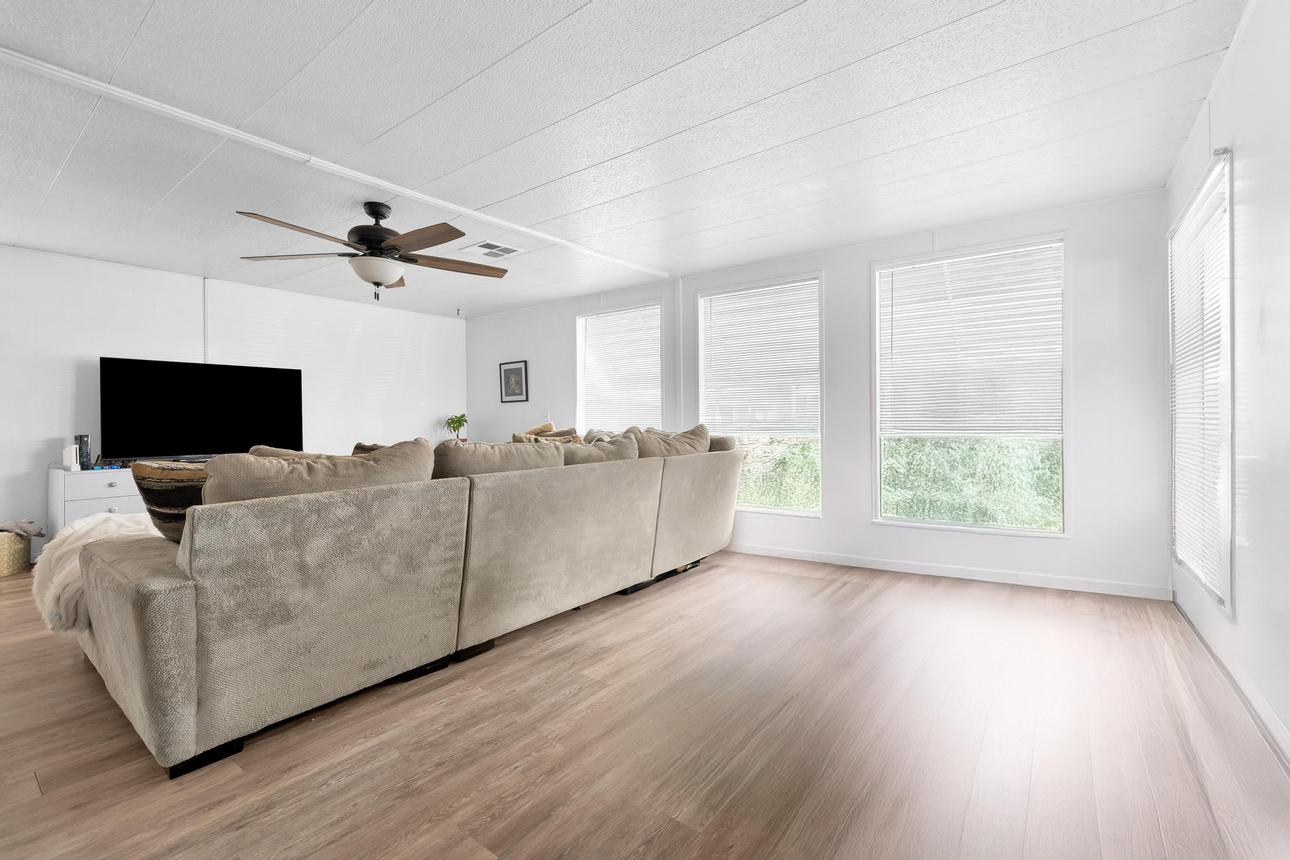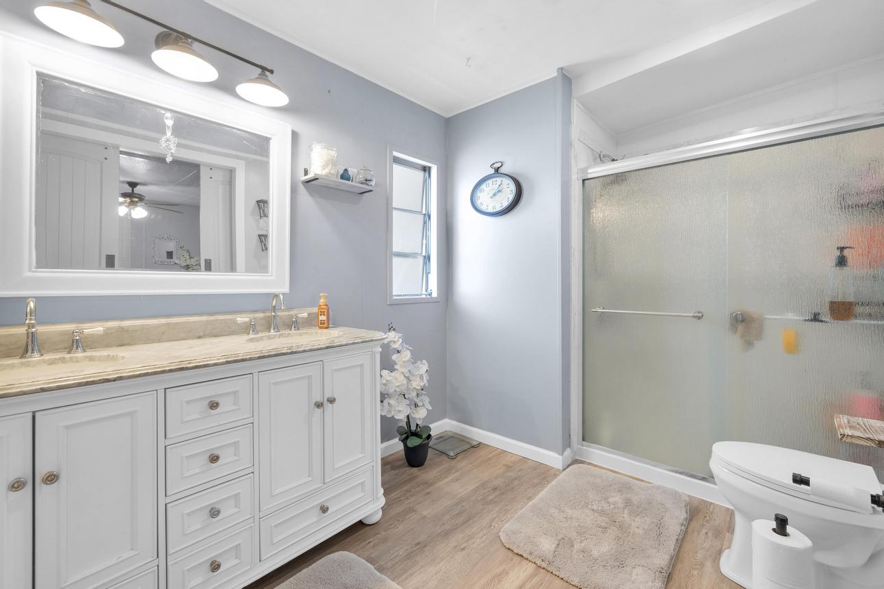 Beautifully upgraded, open concept, roomy 2 BR, 2 BA home. Newer vinyl plank flooring throughout. Upgraded bathrooms with newer vanities, newer shower enclosure in the primary and a newer shower/tub in the guest bath. Large kitchen island, dishwasher, air fry oven and stove combo. Plenty of storage and counter space. The home also has a Calif. room, a utility room and a storage shed. Carport holds three cars, and best of all, No Property Tax, home is on annual registration. Located in a quiet, clean and gated 55+ community. Call today to see for yourself! (AAC6887)