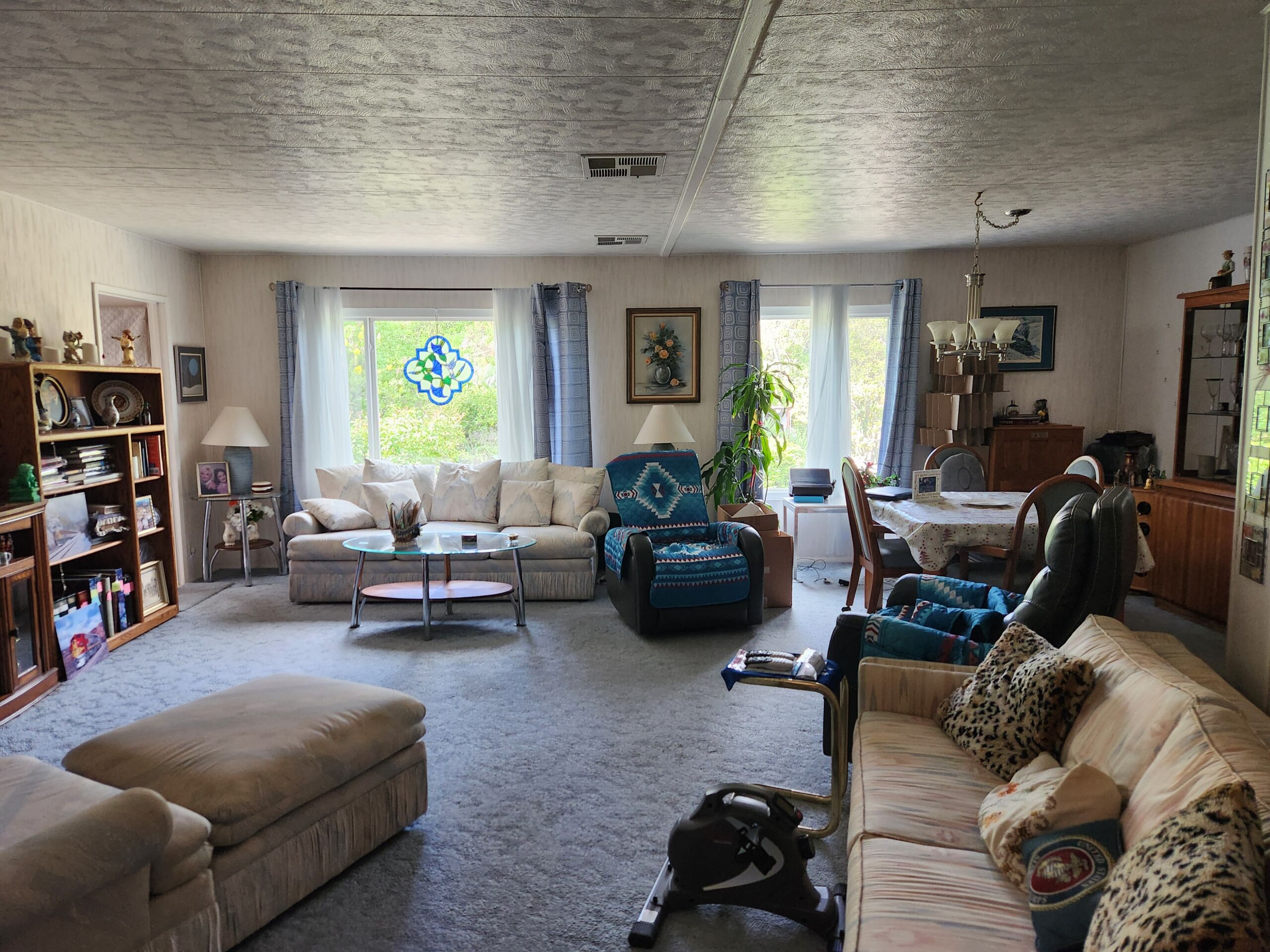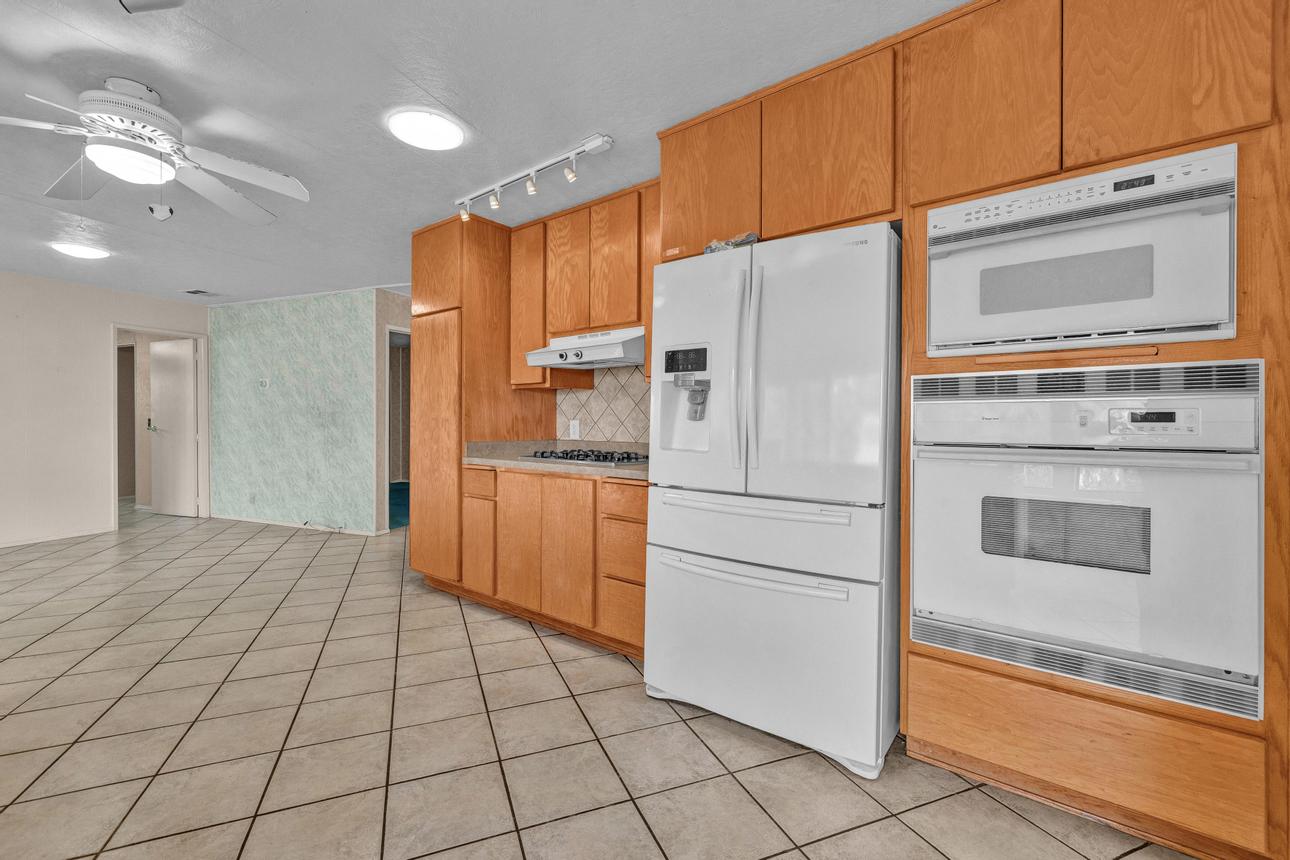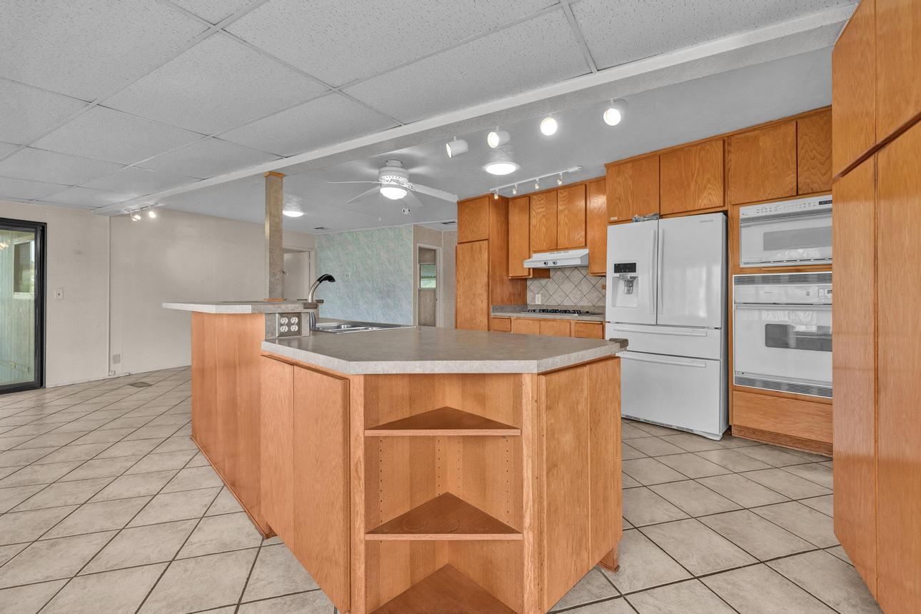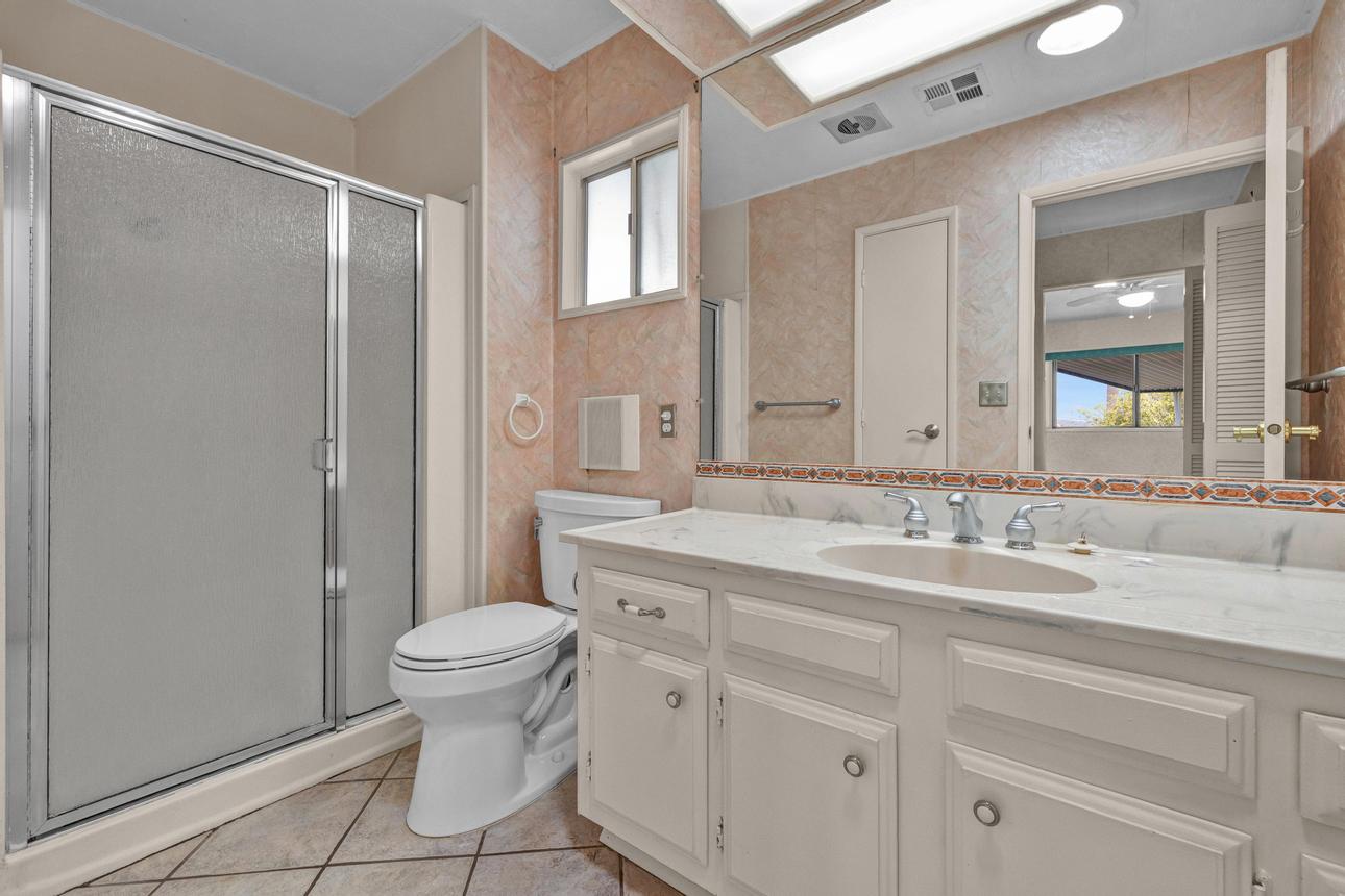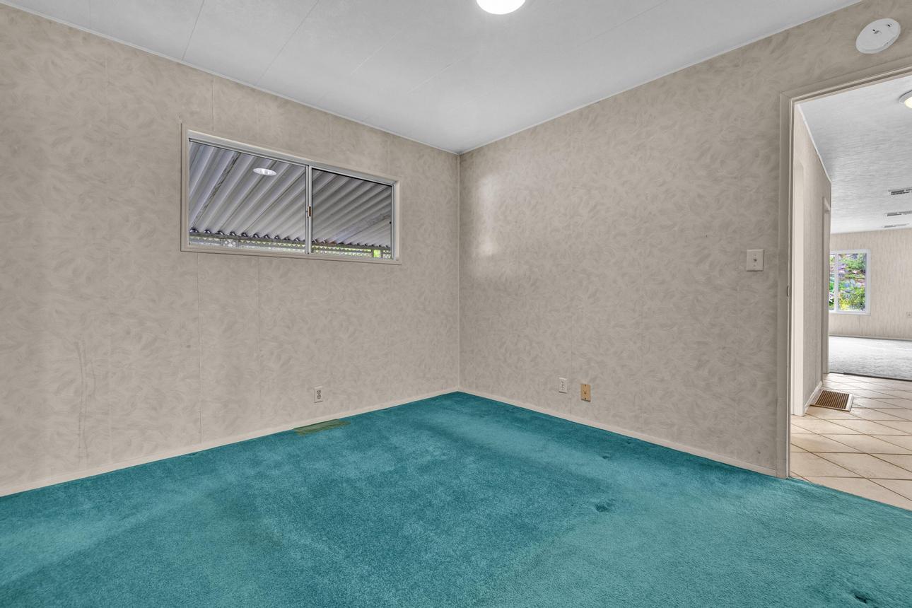 The home’s location is Royal, the Views are expansive, and the Garden is both private and peaceful. Royal View Gardens is one of East County’s most desirable 55+, gated, Resident Owned communities. Sited at the very top of the park is this palatial Goldenwest mobile home with over 1400 sf of living space. The enclosed Calif. room and expanded family room provide an additional 480 sf of added space. One of the largest lots in the park features mature landscaping, fruit trees, a fenced area for a pet, and privacy hedges, all on an automated irrigation system. The spaciously designed kitchen features a 10-foot island with bar seating, double sink, and a stainless-steel Bosch dishwasher. Custom cabinets surround the gas cooktop, stainless steel refrigerator, built in wall oven, matching microwave, and two full height pantries. A wall of windows allows natural light and views to flood this open and inviting space. Just off the kitchen is a covered porch and large patio area. The home features five skylights, a separate laundry with full size washer/dryer, a newer hot water heater, central HVAC, and window AC. The large primary suite offers a ceiling fan, walk-in closet, a bonus closet, and an attached bath with step in shower. Spacious guest bedroom with step-in closet next to the guest bathroom with updated tub/shower. Buy-in $6200, HOA fee is $662.01/month includes access to a sparkling pool, jacuzzi, well-kept grounds, dog park, clubhouse, full kitchen. Home is on annual registration!