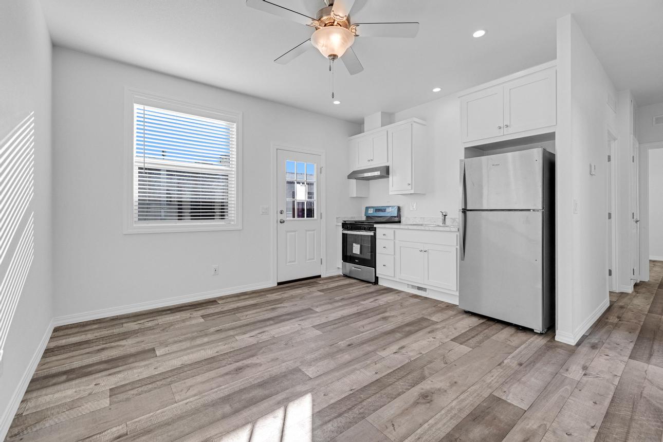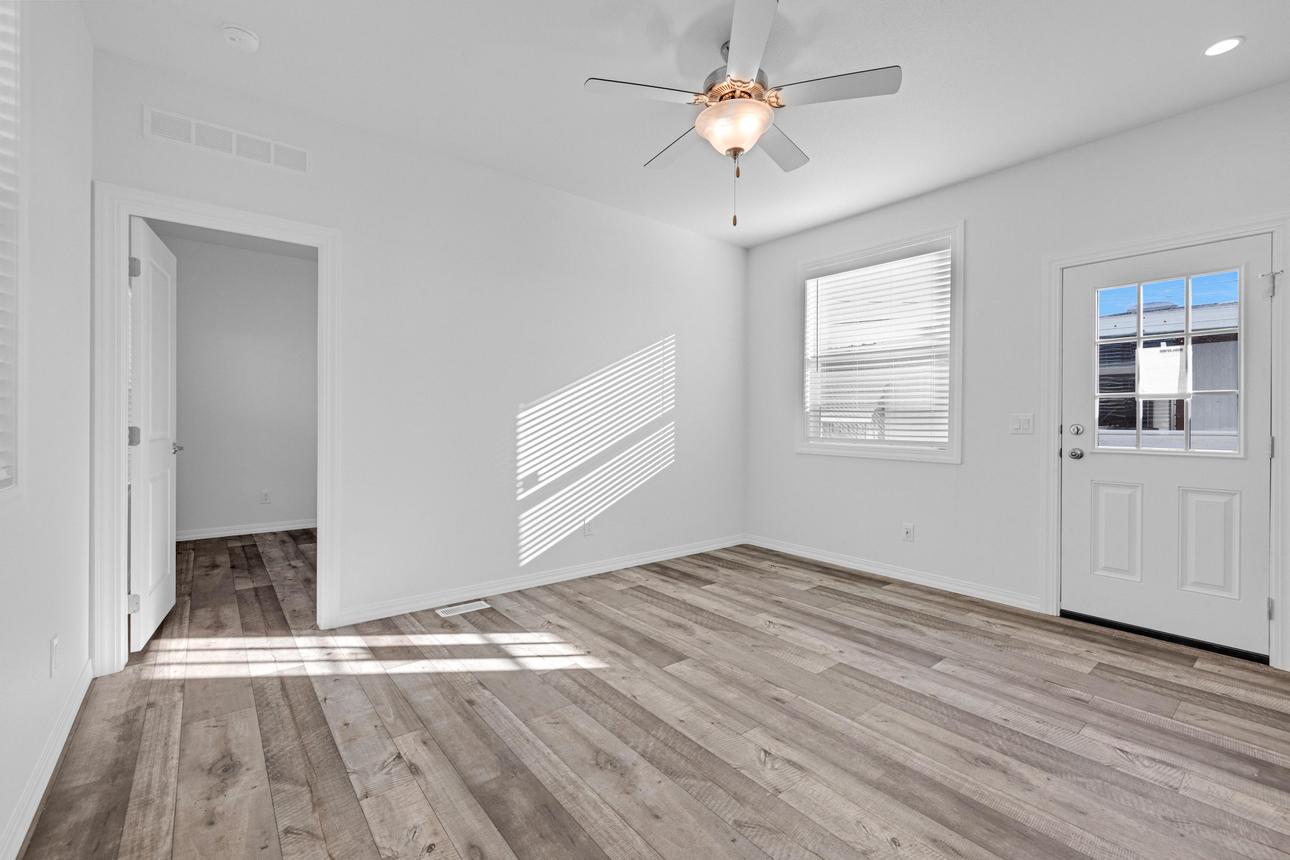 Welcome to this stunning, never-lived-in 2025 Skyline manufactured home offering stylish comfort and efficient living. This 2-bedroom, 1-bath home features an open floor plan, vinyl flooring and stainless steel appliances. Attractive ceiling fans with light in the living room and both bedrooms plus central AC. Enjoy the move-in special space rent, $700 for the first year ($200 a month savings). Great central location close to conveniences, in an All Age community in transition from an RV park. Perfect starter home for 1-2 people or a small family, Call Today!