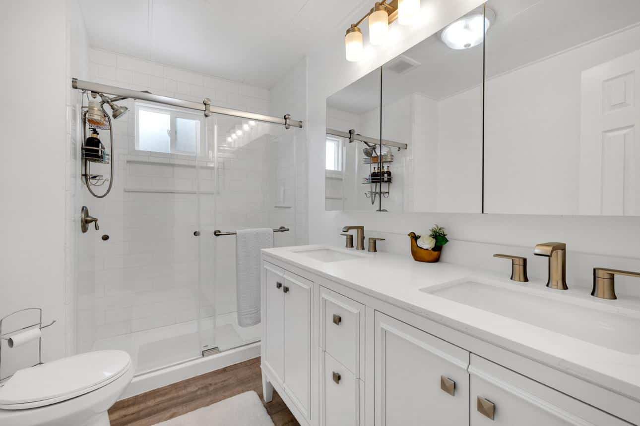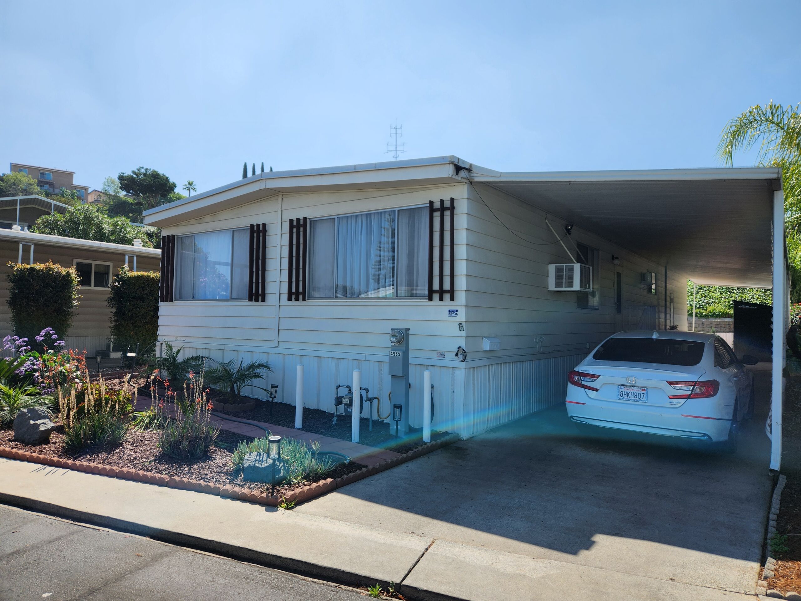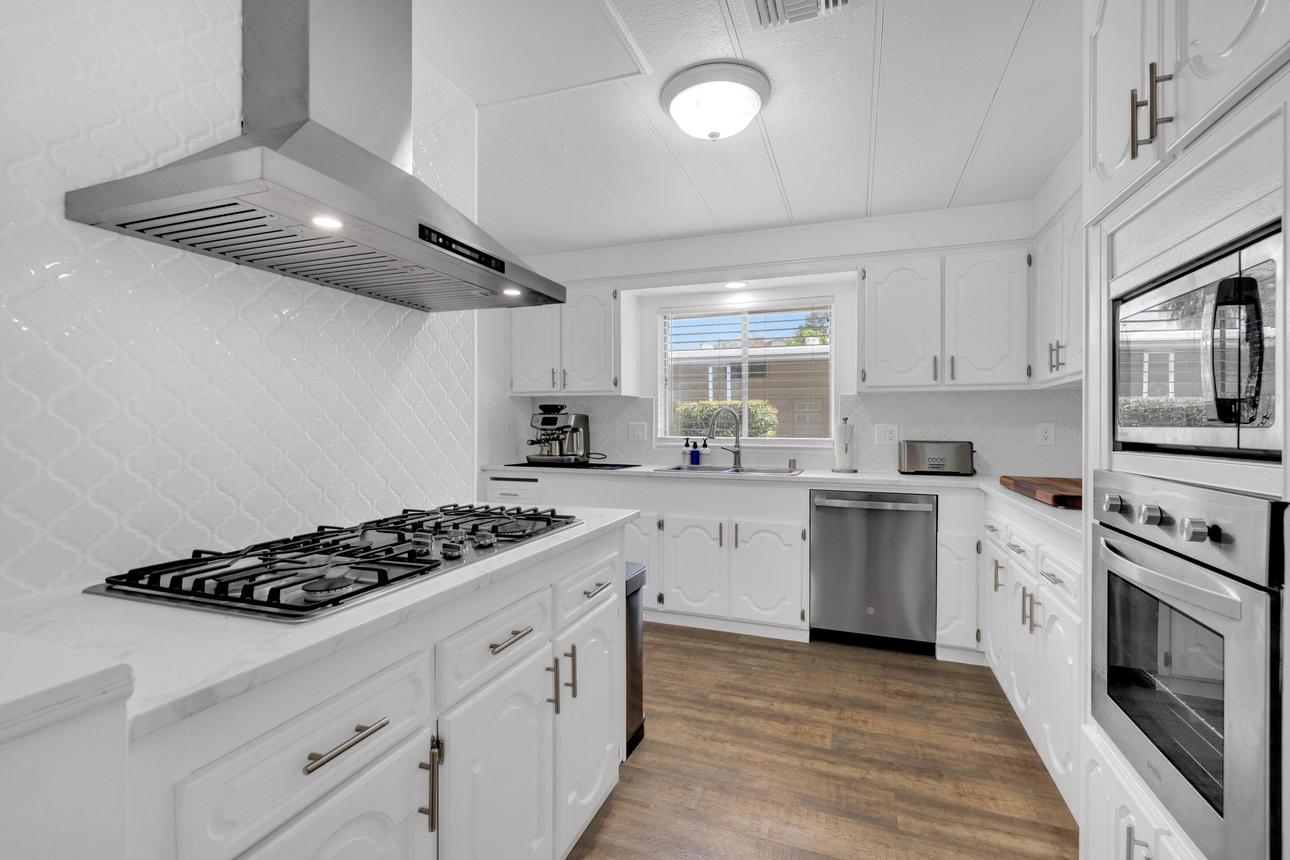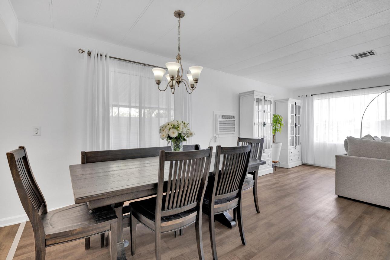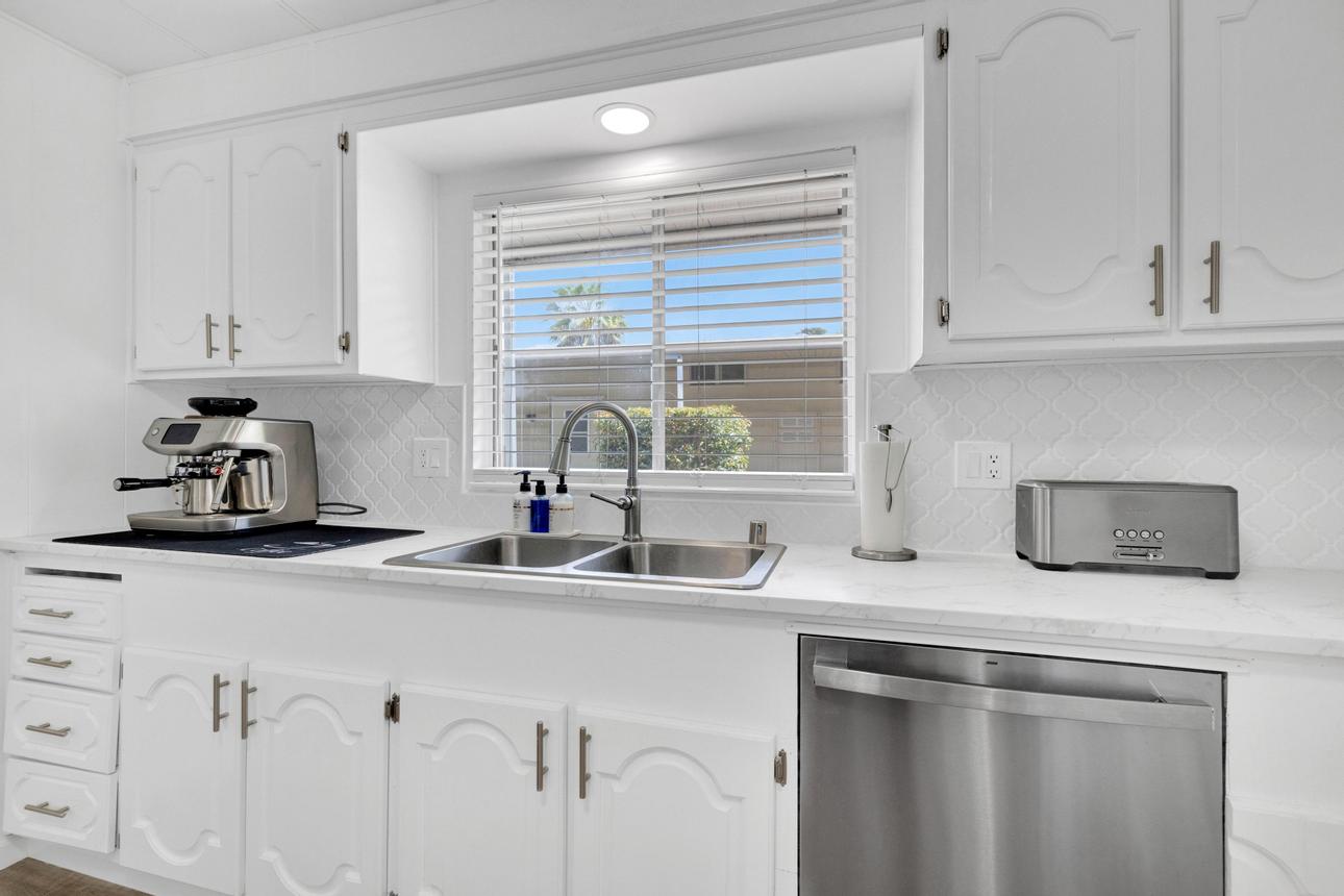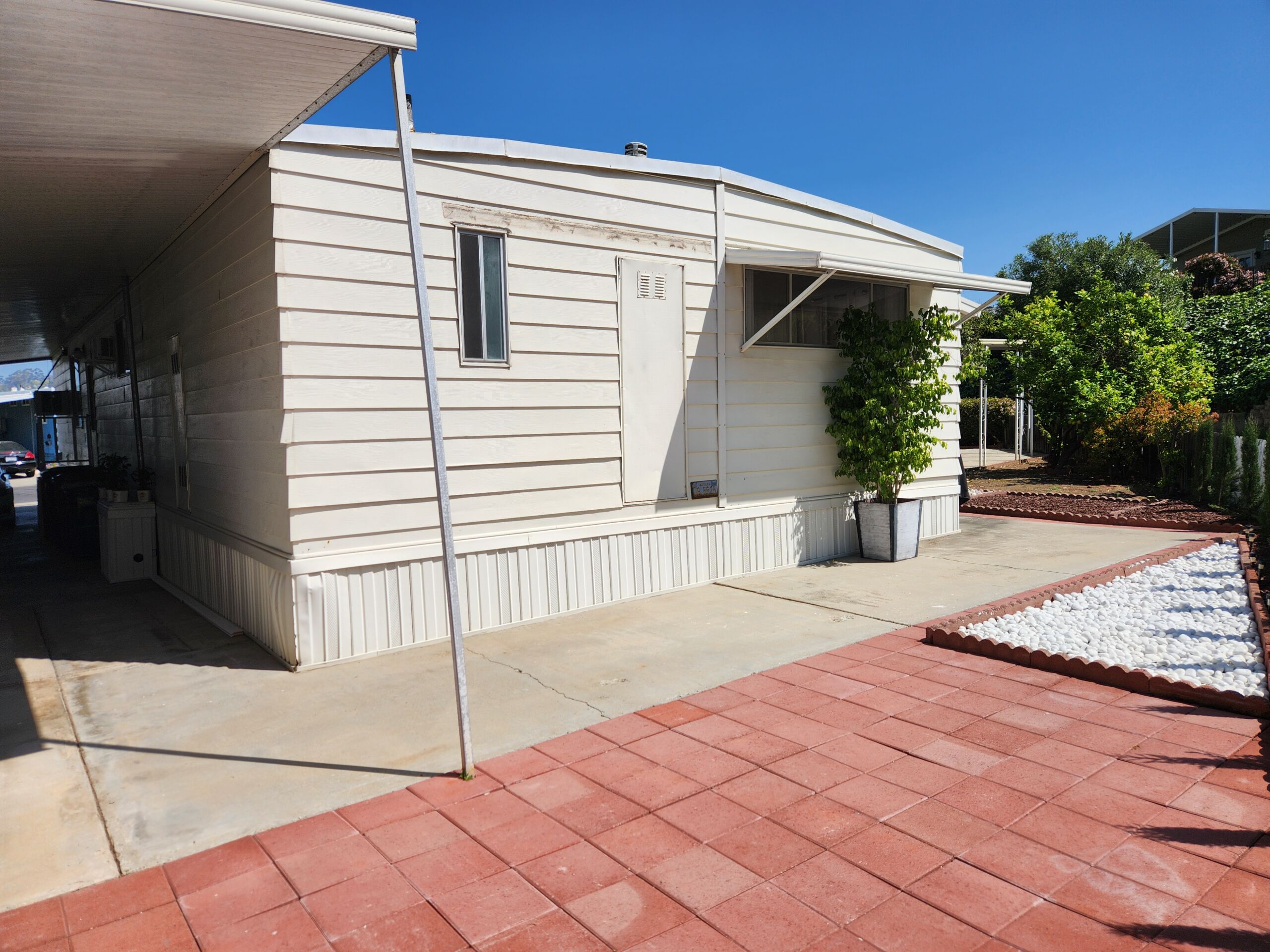 Newly renovated 2-bedroom, 2-bathroom home spans 1,440 sf and features a bonus room that can easily be turned into a private entrance third bedroom. Located in The Cliffs 55+ Mobile Home Park just minutes from Admiral Baker Golf Course, Mission Valley, Downtown San Diego, shopping, dining and health care. Home features a white, crisp, and clean themed move in ready retreat. Dual glazed vinyl windows, window treatments, shutters, new laminate & carpet flooring, and new 6 panel doors. Large living room and dining room are flooded with natural light, kitchen features all new appliances, new counter tops, tiled backsplash, and fresh paint. Both bathrooms are newly remodeled with new plumbing, fixtures, showers, glass doors, mirrors and lighting. Huge primary bedroom with 2 closets, and new carpeting. Three window AC’s to reduce energy costs. Even the yard is newly landscaped with easy care plants! Situated with no neighbors behind you, spacious and fenced rear yard, two sheds, and off street 3 car driveway. (LAZ4890)