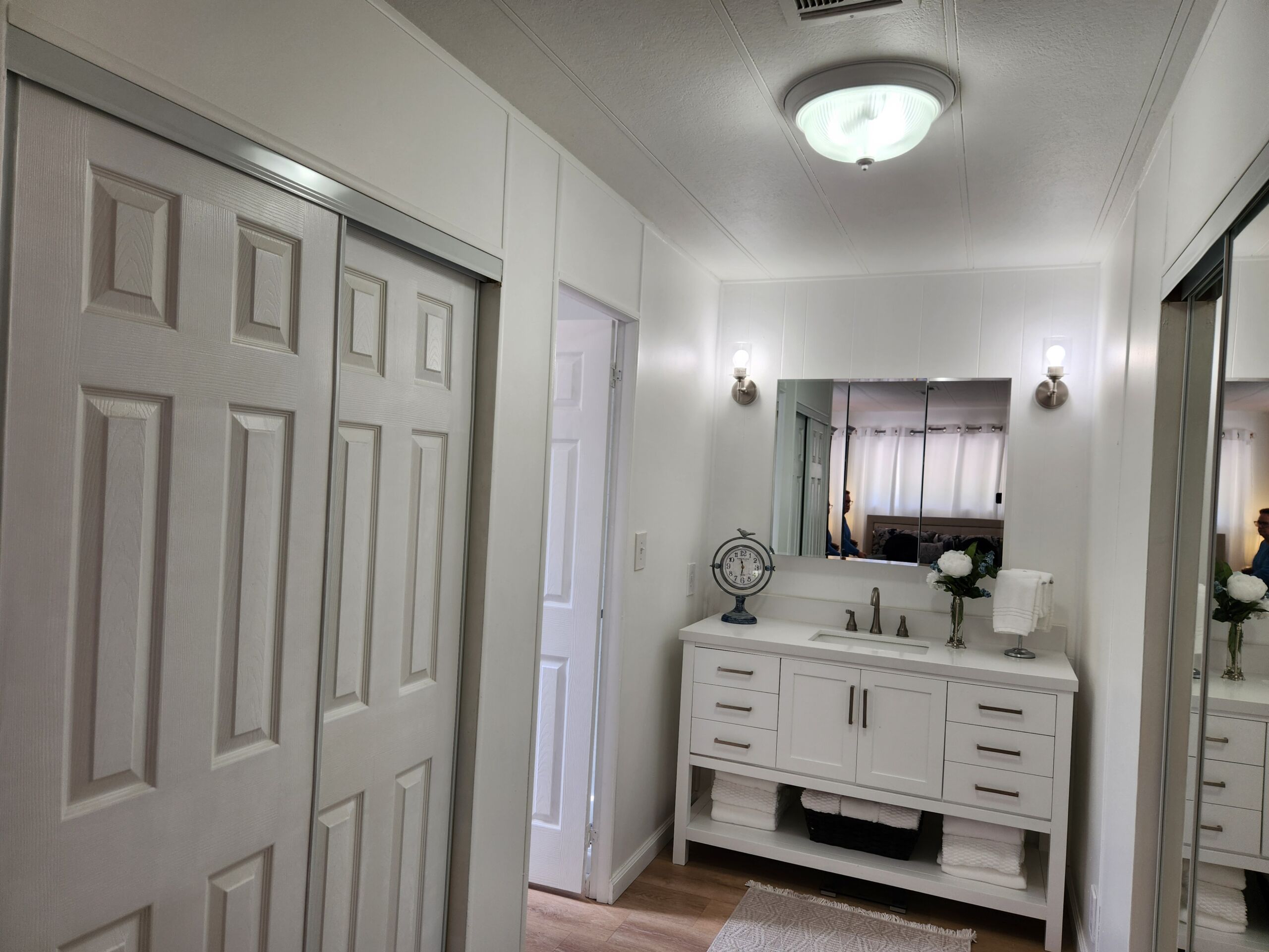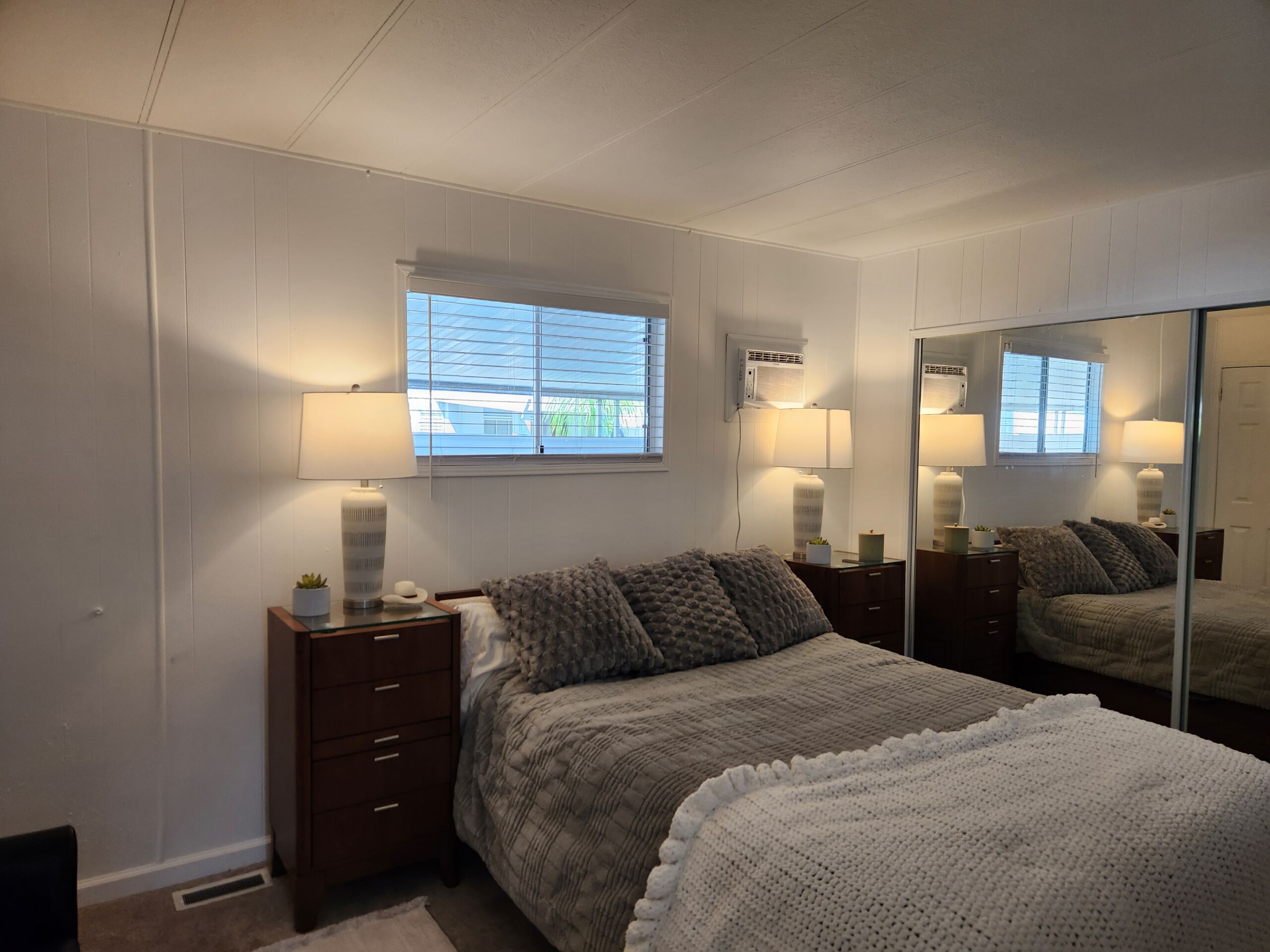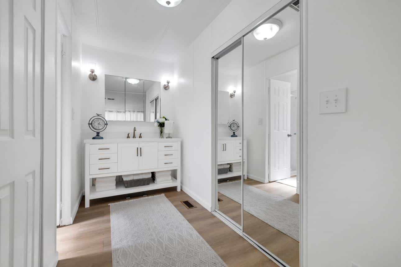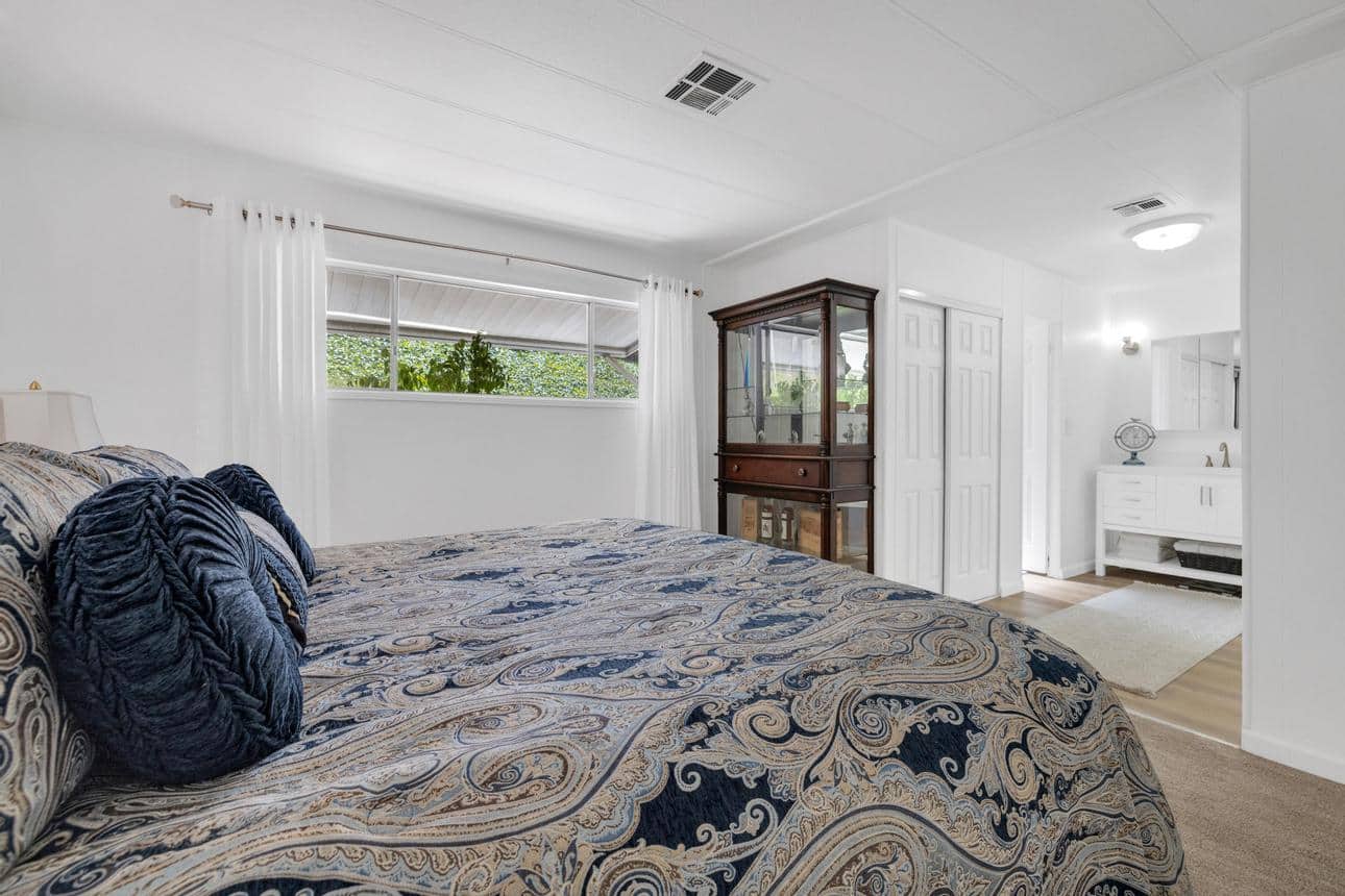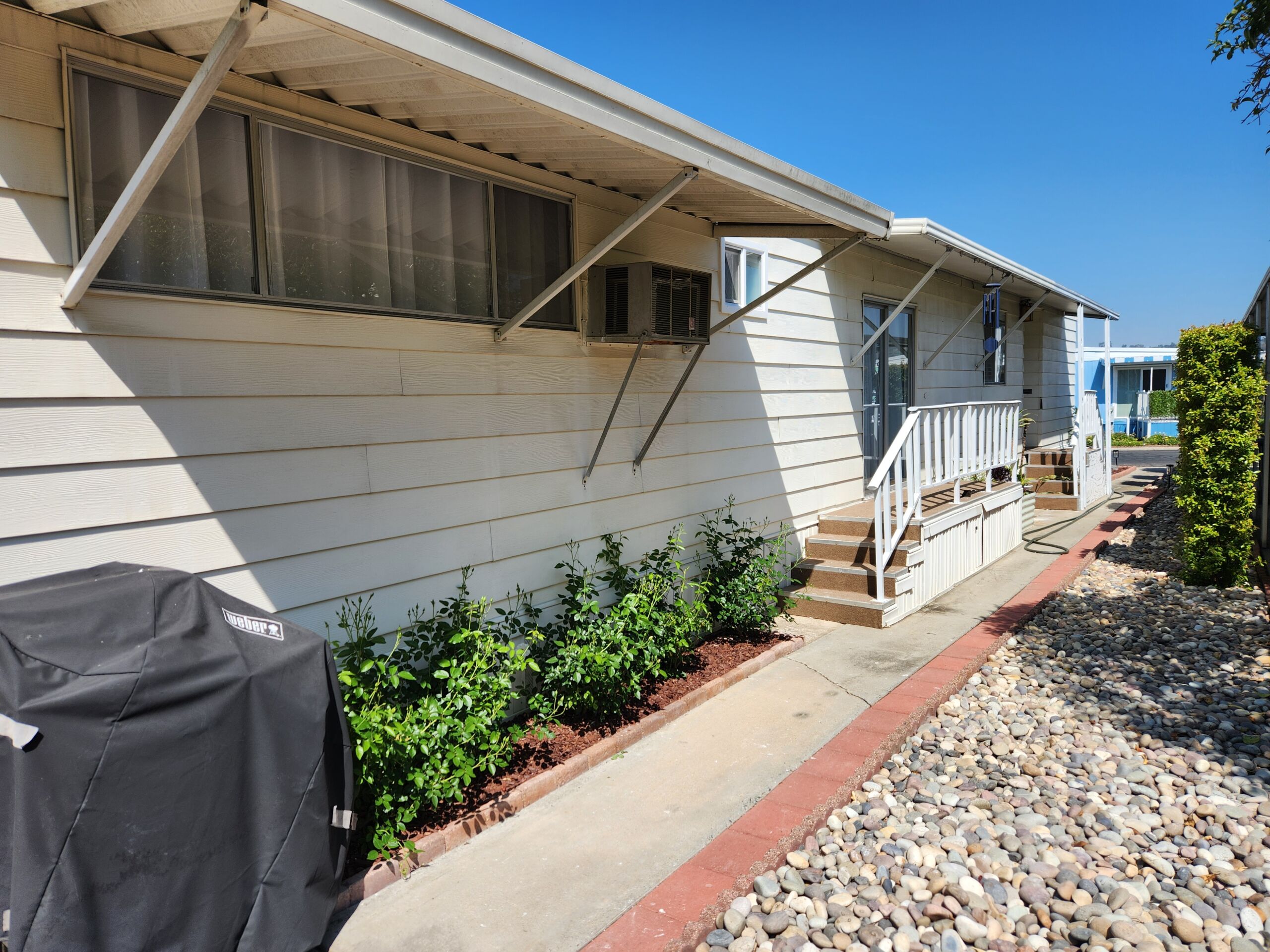 Newly renovated 2-bedroom, 2-bathroom home spans 1,440 sf and features a bonus room that can easily be turned into a private entrance third bedroom. Located in The Cliffs 55+ Mobile Home Park just minutes from Admiral Baker Golf Course, Mission Valley, Downtown San Diego, shopping, dining and health care. Home features a white, crisp, and clean themed move in ready retreat. Dual glazed vinyl windows, window treatments, shutters, new laminate & carpet flooring, and new 6 panel doors. Large living room and dining room are flooded with natural light, kitchen features all new appliances, new counter tops, tiled backsplash, and fresh paint. Both bathrooms are newly remodeled with new plumbing, fixtures, showers, glass doors, mirrors and lighting. Huge primary bedroom with 2 closets, and new carpeting. Three window AC’s to reduce energy costs. Even the yard is newly landscaped with easy care plants! Situated with no neighbors behind you, spacious and fenced rear yard, two sheds, and off street 3 car driveway. (LAZ4890)