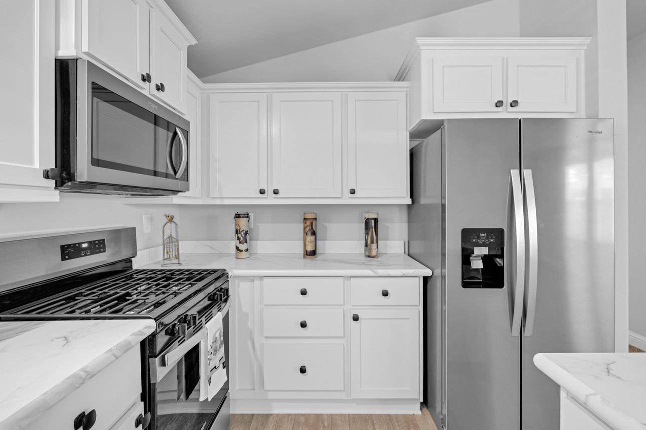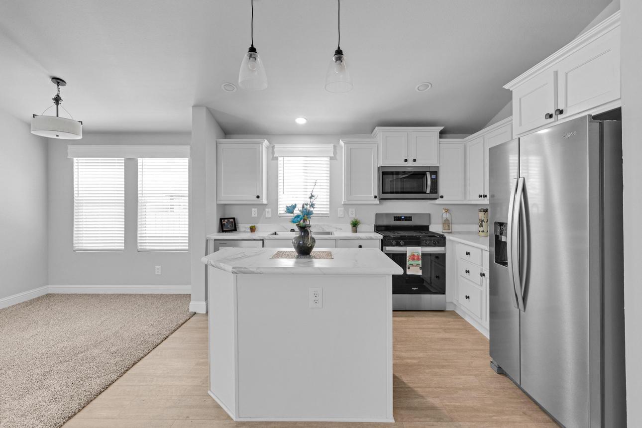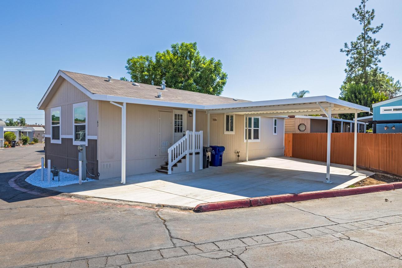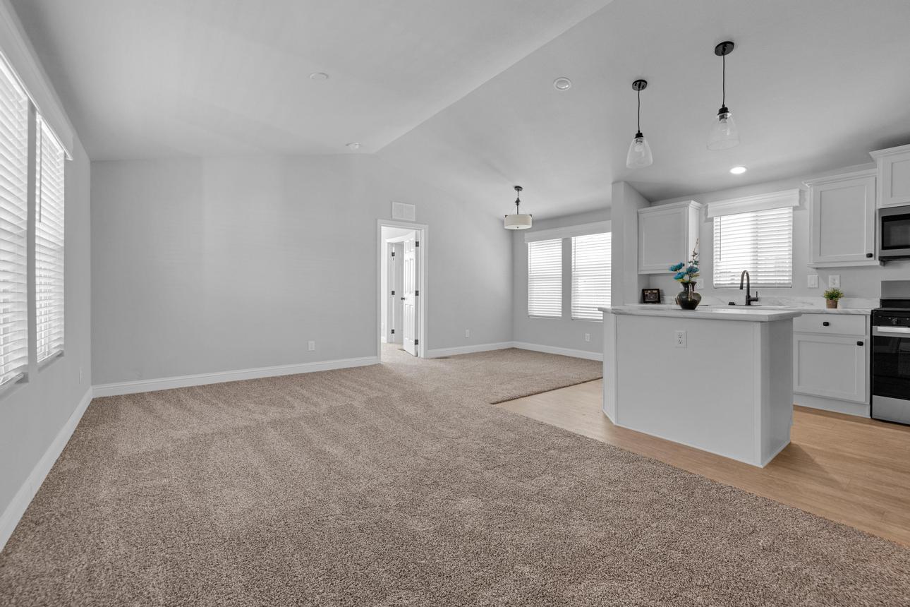 Brand New Manufactured Home! Corner lot in an All Age community. Split concept floor plan, Primary bedroom on one end and the two additional bedrooms on the other, great for privacy. Upgraded stainless appliance package in the kitchen with a built in microwave, dishwasher and side by side refrigerator with a water/ice dispenser. Recessed and pendant lighting, white shaker cabinetry and black hardware. Guest bath has a shower/tub combo. The primary bedroom and ensuite are spacious with plenty of closet space and the bath has a step-in shower. Upgraded window valances and exterior trim. Parking is side-by-side and covered with room for more than two cars. Call today to see this brand new home for yourself!